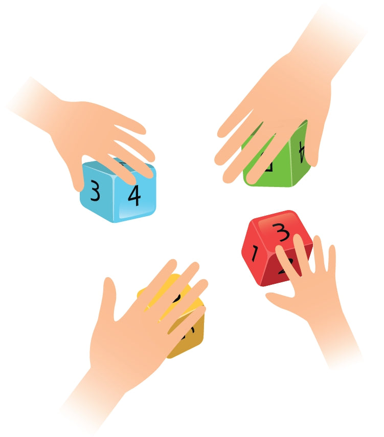 - Gooi de (kleine) vermenigvuldigingsdobbelsteen