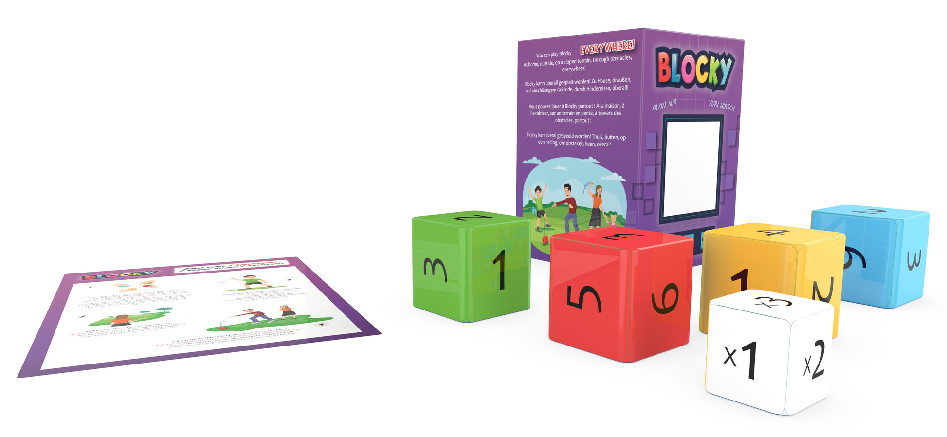 Blocky is een dobbelspel, welke zich het beste laat beschrijven als een mengeling tussen Jeu-de-boules, dobbelen en rekenen. Probeer je dobbelstenen zo dicht mogelijk bij de vermenigvuldigingsdobbelsteen te krijgen en punten te verzamelen. De eerste speler die 40 punten behaalt wint!