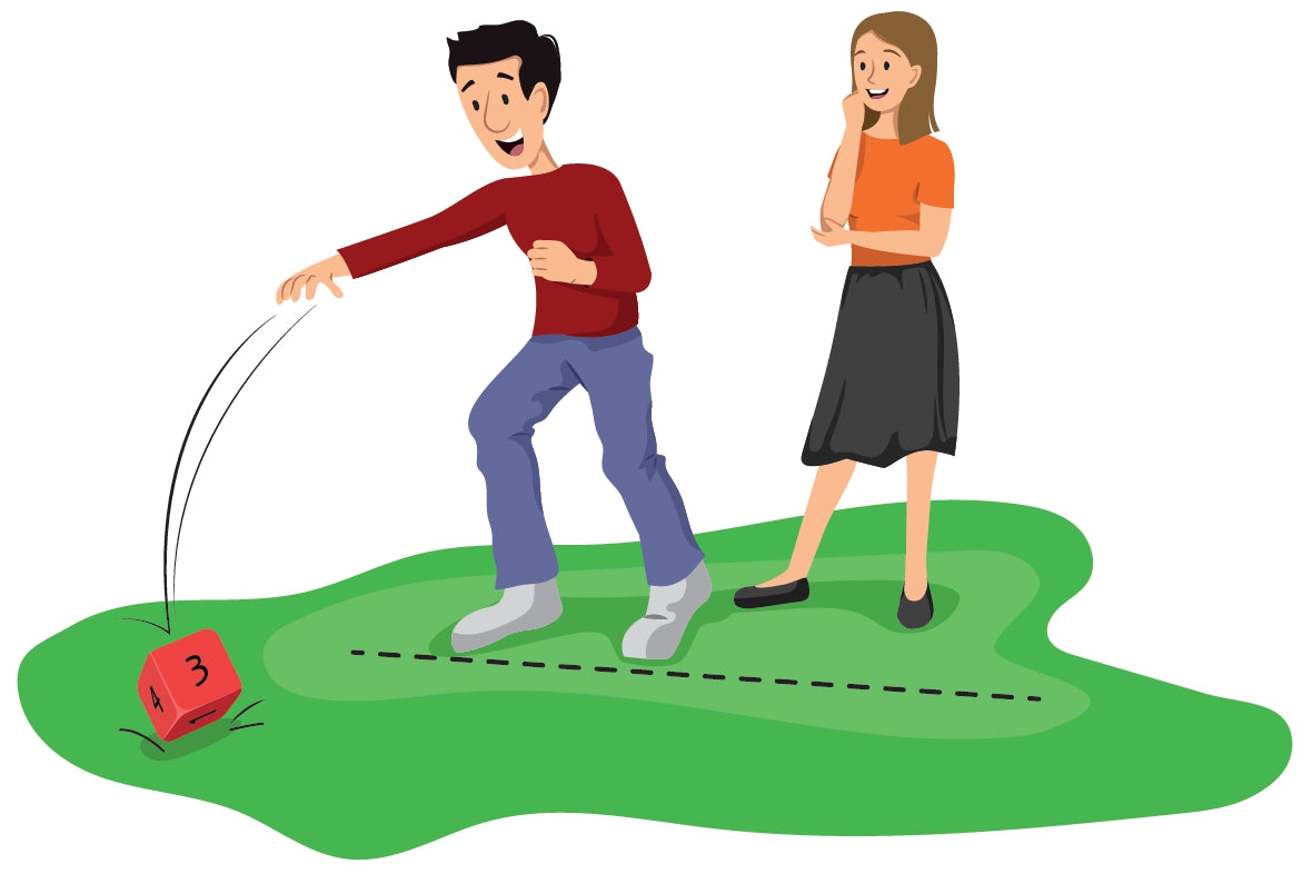 - Gooi om de beurt je dobbelstenen vanaf de dezelfde plaats