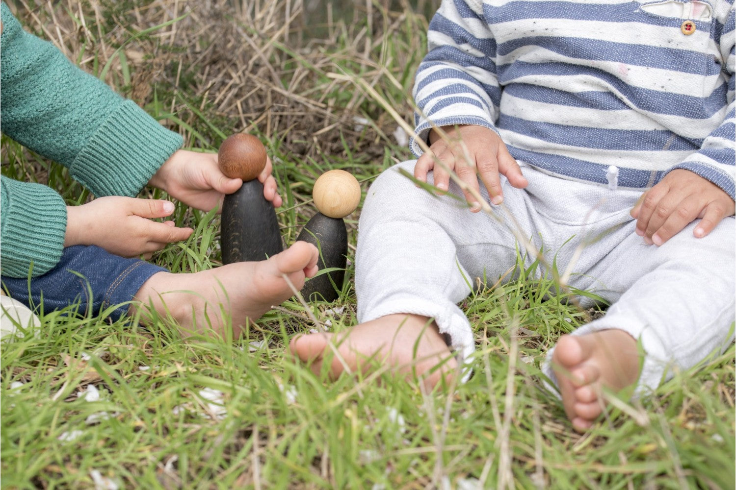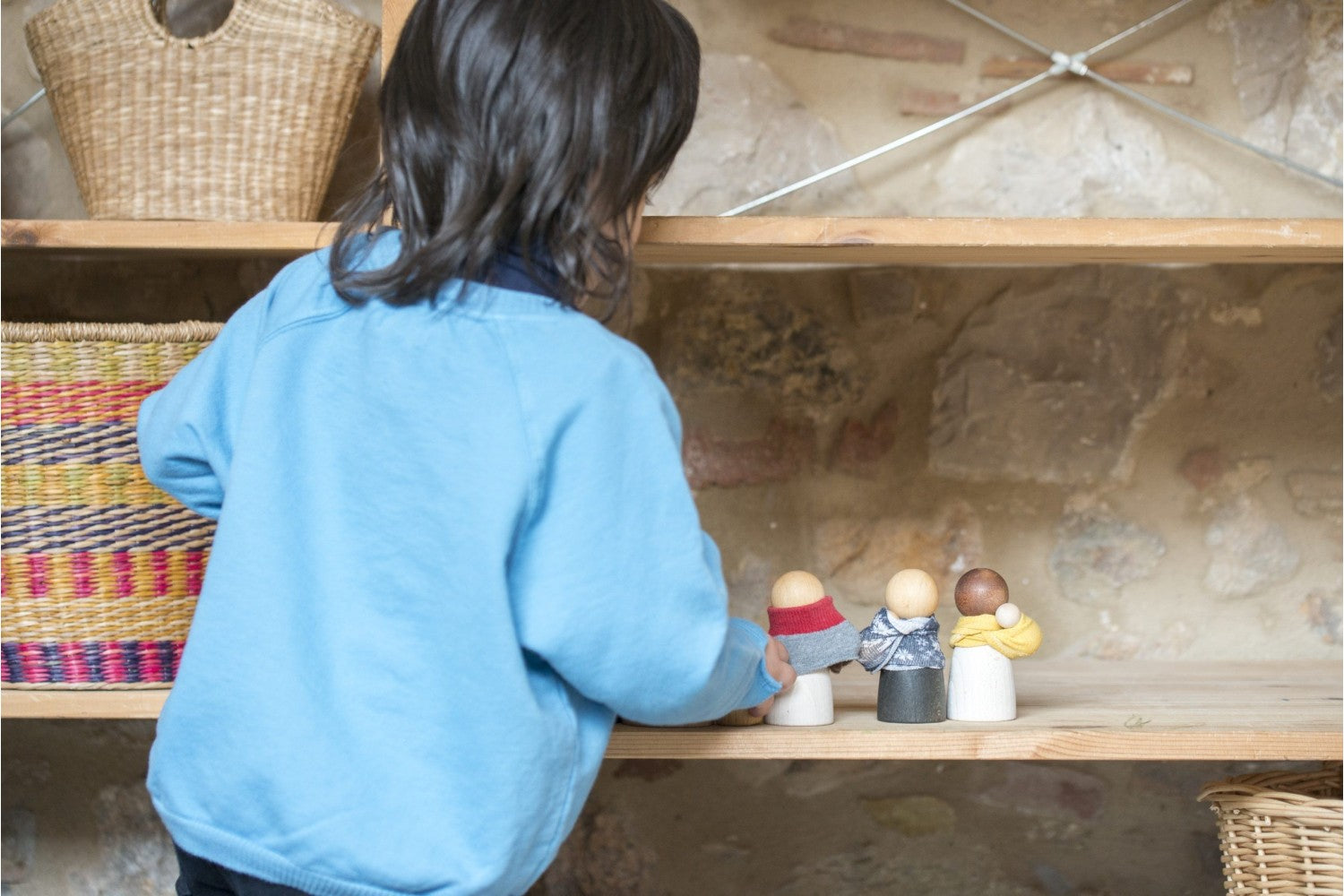 Deze set van 2 grote nins gemaakt van donker hout. De afmetingen van deze figuren maken het mogelijk om de verschillende generaties in het leven van het kind te weerspiegelen.