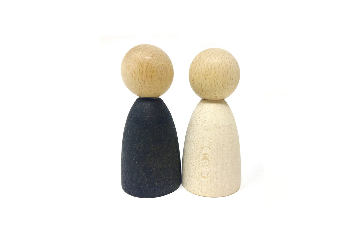 Deze set van 2 grote nins gemaakt van licht hout. De afmetingen van deze figuren maken het mogelijk om de verschillende generaties in het leven van het kind te weerspiegelen.