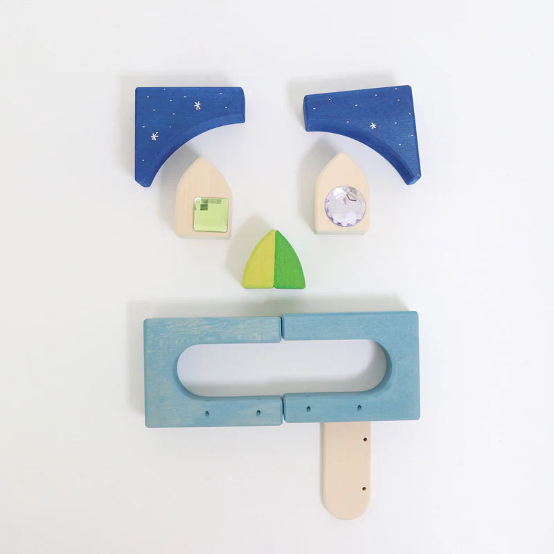 De koude blauwwitte tinten geven de bouwwereld Poollicht een ijzige en sprookjesachtige uitstraling. De bouwmaterialen hebben een grote verscheidenheid aan vormen, waardoor fantasierijk en vrij bouwen mogelijk is. De bouwwereld wordt geleverd in een handige lijst.