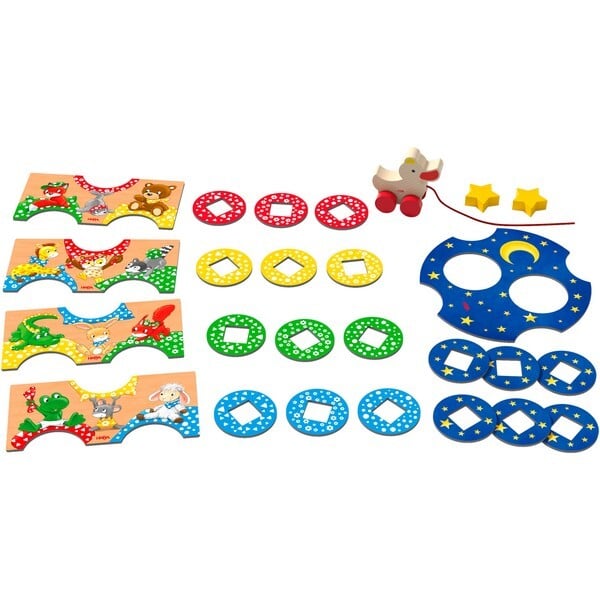Chaos in de kinderkamer! De knuffeldieren zoeken hun favoriete hoed. Eend Lu wil hen helpen. Help haar in twee toewijzingsspellen! In het eerste coöperatieve spel winnen jullie samen als jullie 6 hoeden hebben toegewezen voordat alle sterrenkaartjes omgedraaid zijn. In het tweede spel spelen jullie tegenover elkaar: wie vindt als eerste zijn/ haar eigen 3 hoeden?