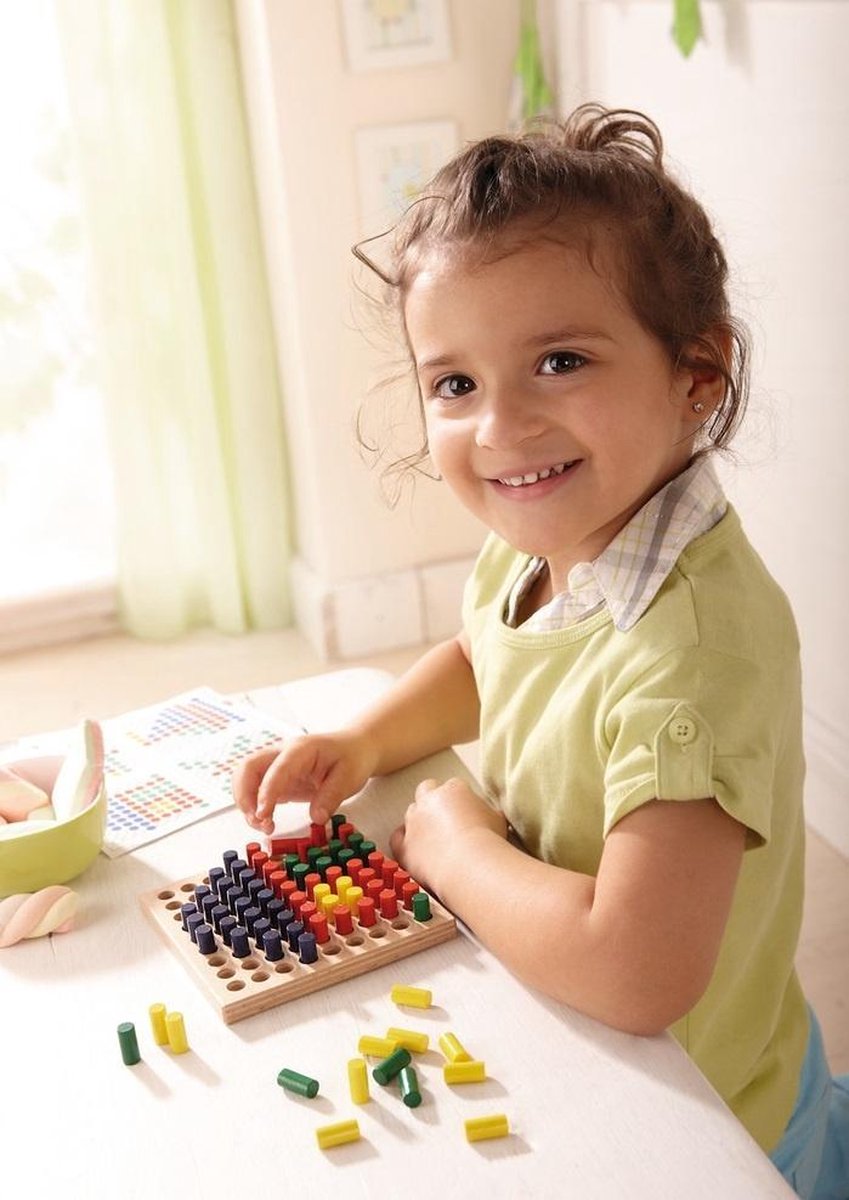 Hoe wordt uit kleurige ronde pinnen een huis, een schip of een boom gemaakt?
