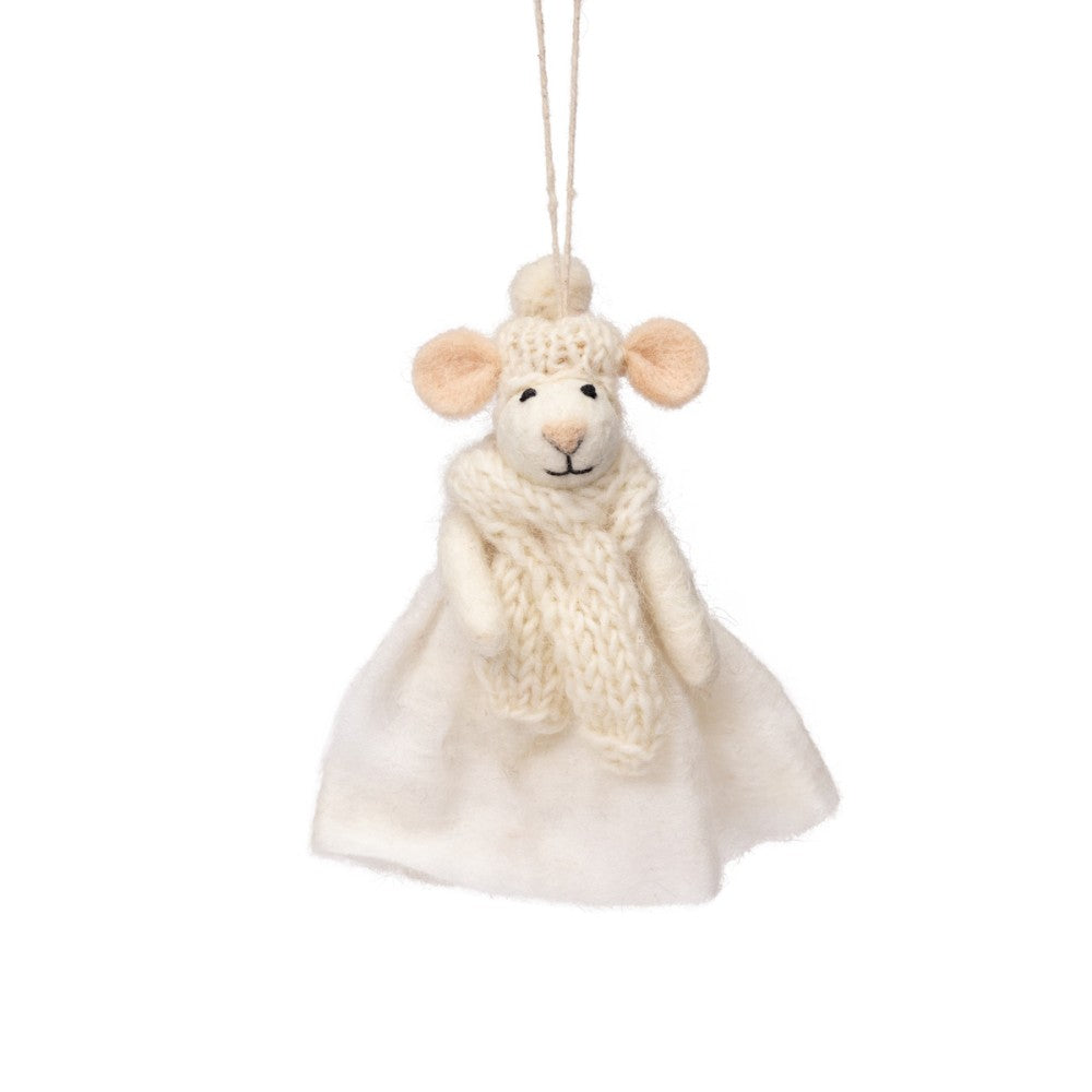 Hanger van een muis uit de serie Notenkraker, Oma in de kleur wit. Voorzien van touwtje om ergens aan te hangen. Leuk in de kerstboom!