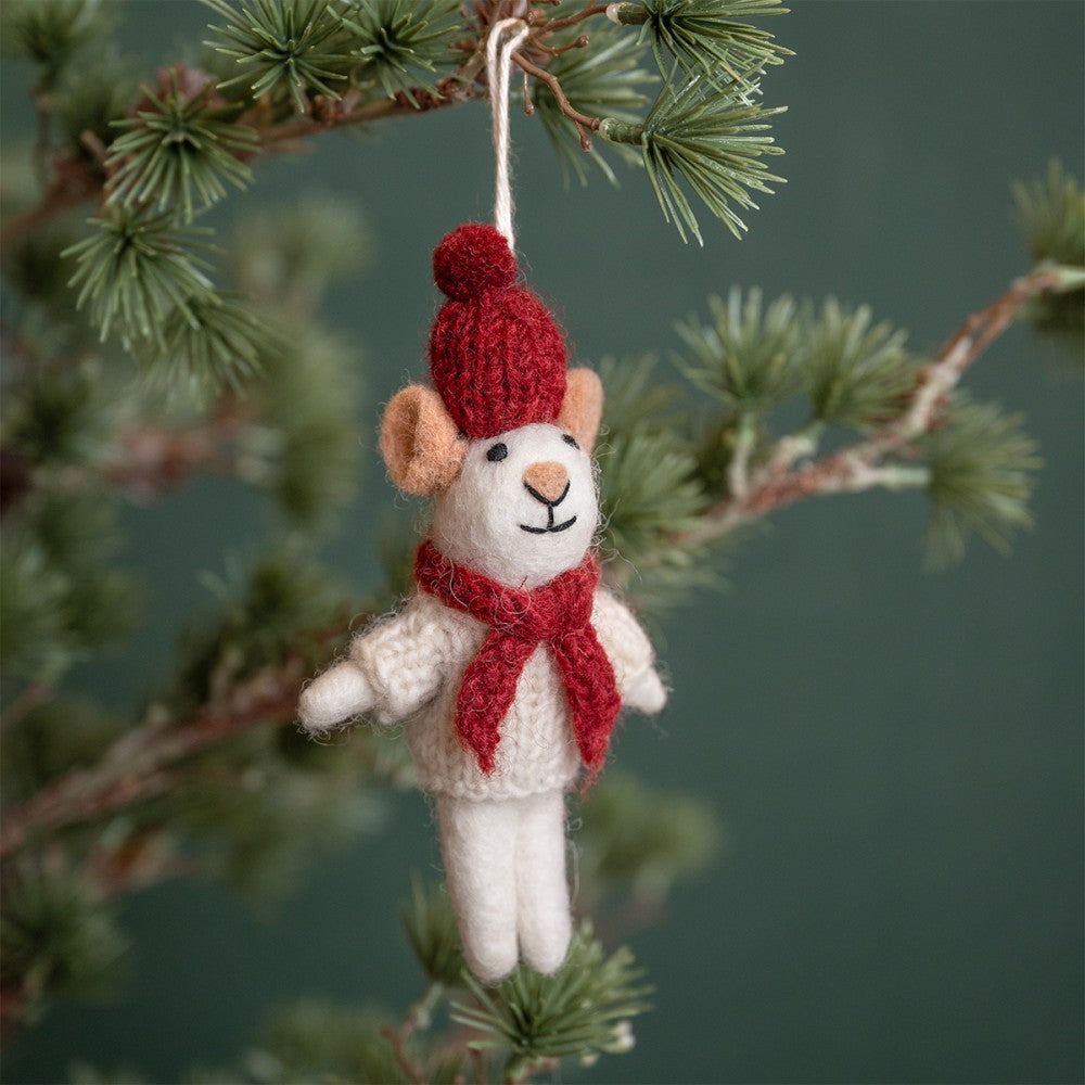 Hanger van een muis met rode sjaal en rode muts.