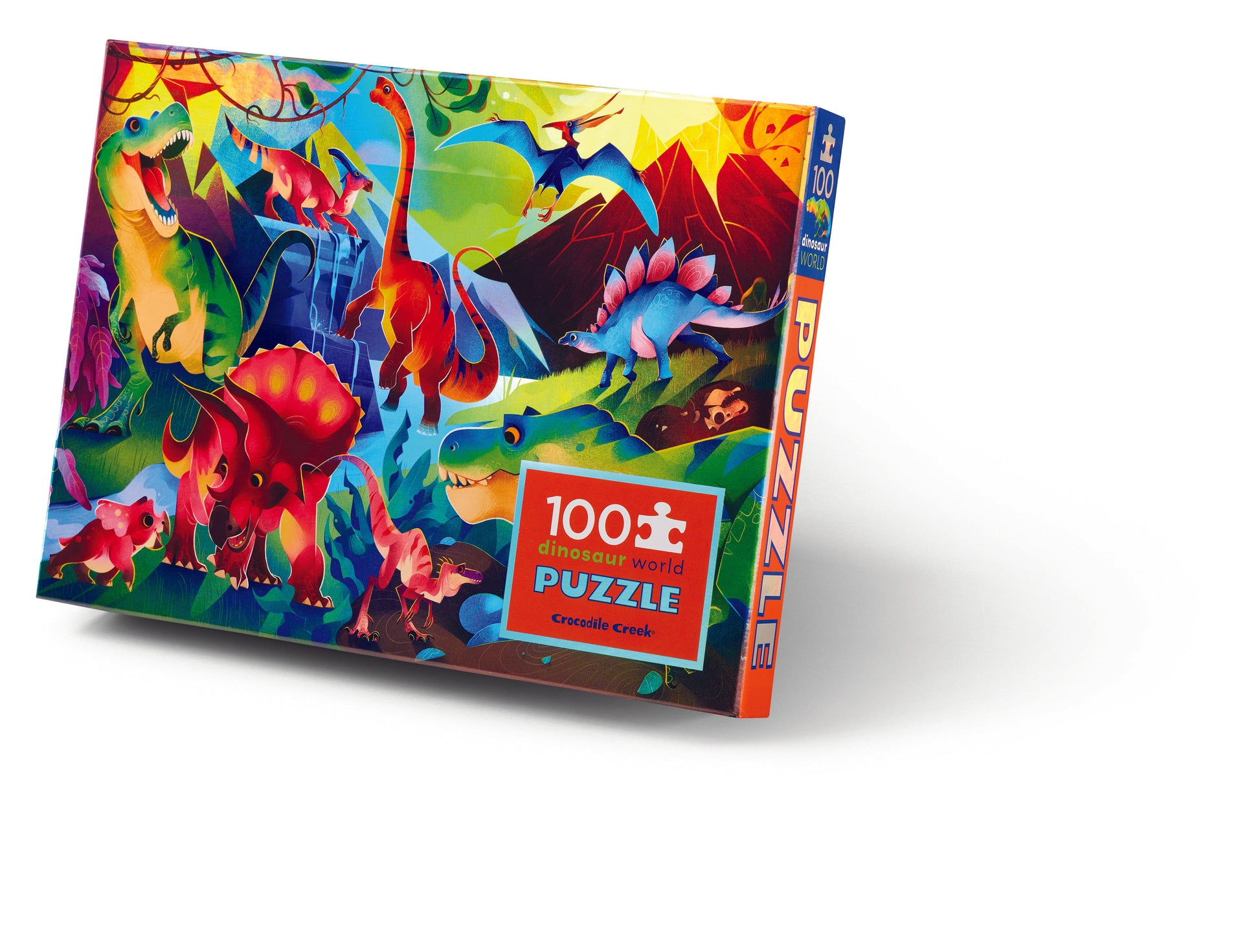 Holographic foil puzzel dino wereld met 100 stukjes.