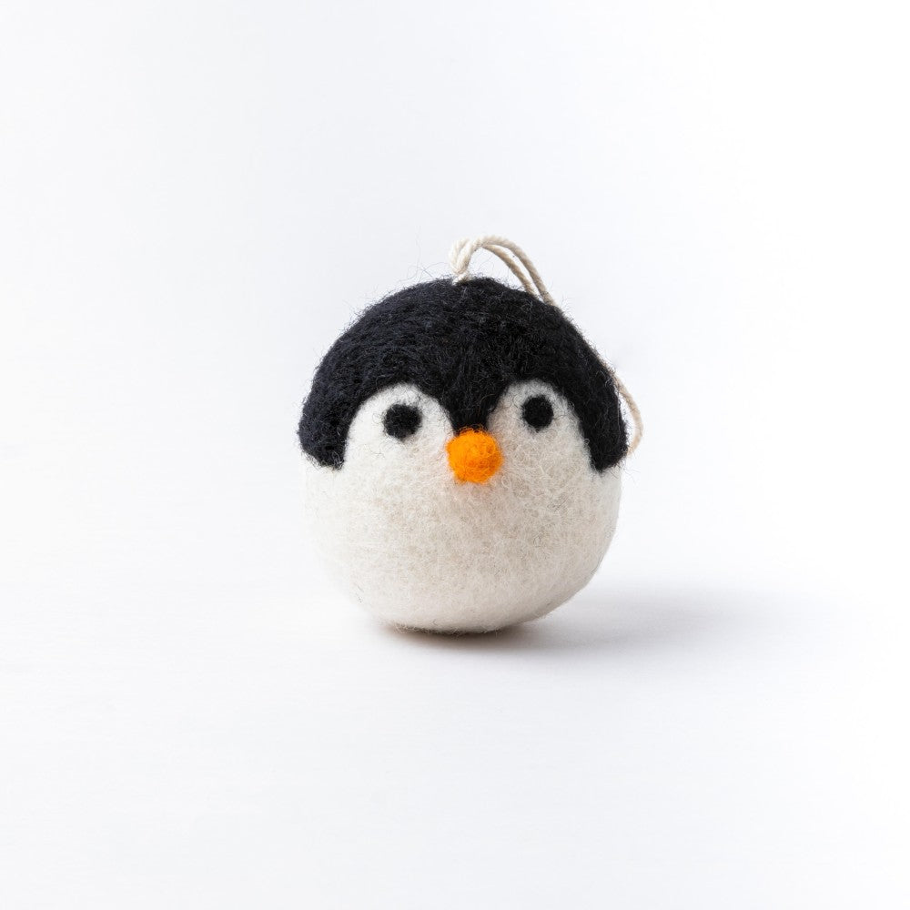 Een vilten kerstbal met het gezicht van een Pinguïn. Ook verkrijgbaar als ijsbeer en rendier. Erg leuk voor in de kerstboom! Ideaal voor een huishouden met kinderen en/of dieren, deze kerstballen kunnen namelijk niet kapot vallen!