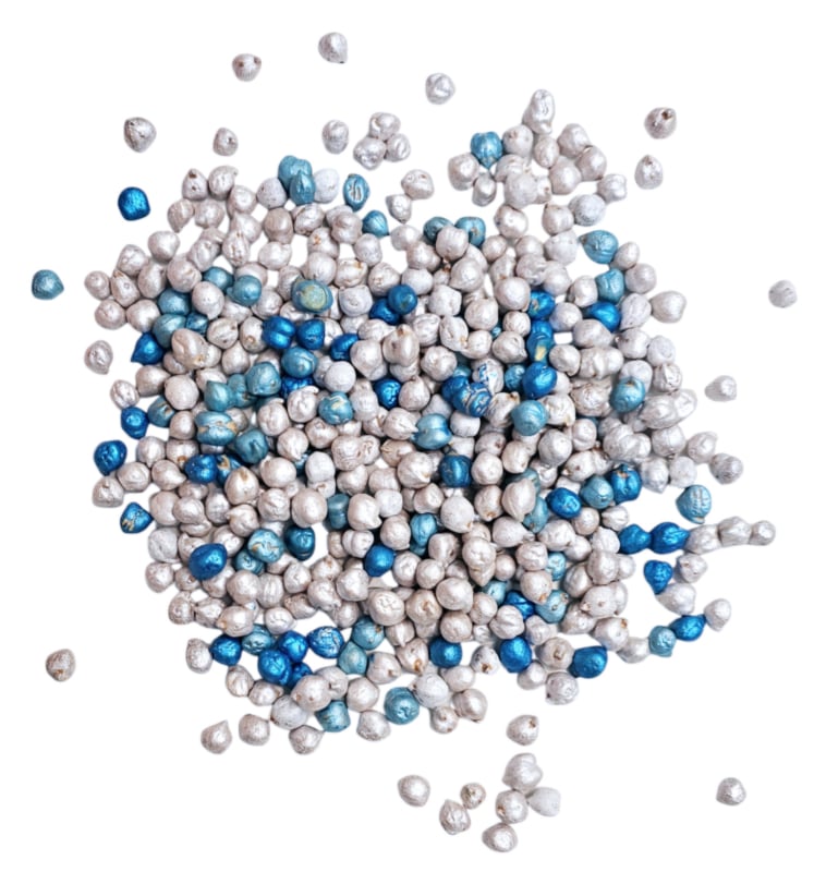 De parels zitten in een recyclebare afsluitbare pet pot met schroefdop zodat je de mix ook weer makkelijk kan opbergen. Bewaar deze droog.