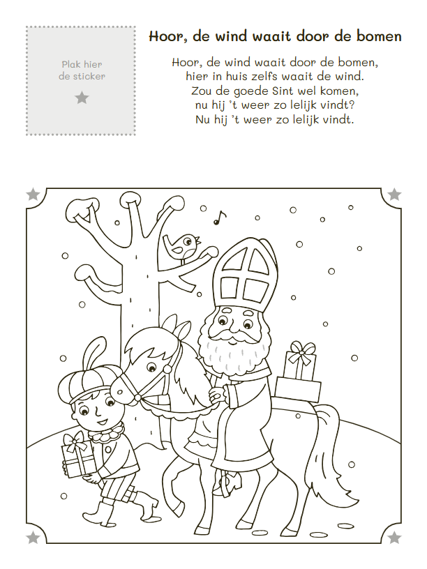 Met dit leuke stickerboek kom je helemaal in de sinterklaassfeer! Plak de juiste sticker bij de kleurplaat en kleur de tekening in. Terwijl je plakt en kleurt, kan je de leuke sinterklaasliedjes zingen. Sinterklaas kapoentje, Zie ginds komt de stoomboot, Hoor de wind waait door de bomen... Ze staan er allemaal in!