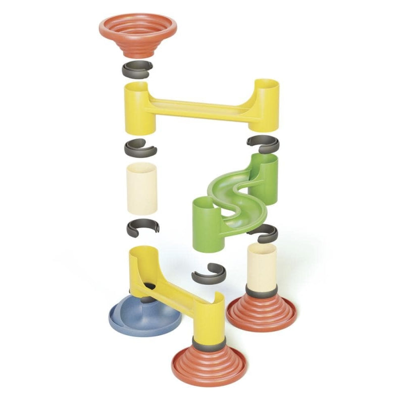 Met deze spannende bouwset, kunnen kinderen hun eigen knikkerbaan samenstellen. In elkaar grijpende goten, bruggen, pijlers en draaiende wielen kunnen allemaal worden gecombineerd. Alle stukken zijn gemaakt van hoogwaardige materialen, onbreekbaar en duurzaam.