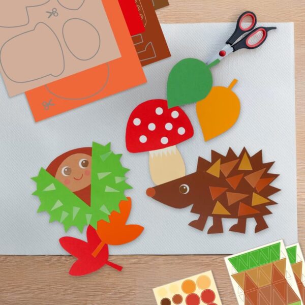 Maak schattige herfstvriendjes met deze knutselset. Deze knutselset bevat 16 herfstmotieven, waaronder een kastanje, een egel, een paddenstoel, blaadjes en een appel. Door de voorgedrukte vormen uit te knippen, leren kinderen spelenderwijs hoe ze een schaar moeten gebruiken en kunnen ze werken aan hun knipvaardigheden. Lijm de onderdelen aan elkaar en versier ze met de meegeleverde stickers om schattige herfstfiguren te maken. Leuk om op het raam te plakken.