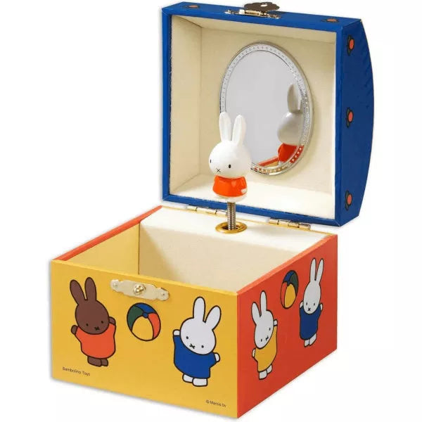 Een muzikaal byouxdoosje voor je kleinste schatten. Als je het doosje opent, speelt het muziekje en danst nijntje voor de spiegel. Dit muziekdoosje is uitgevoerd in de herkenbare kleurstijl van Dick Bruna, met afbeeldingen van nijntje rondom.