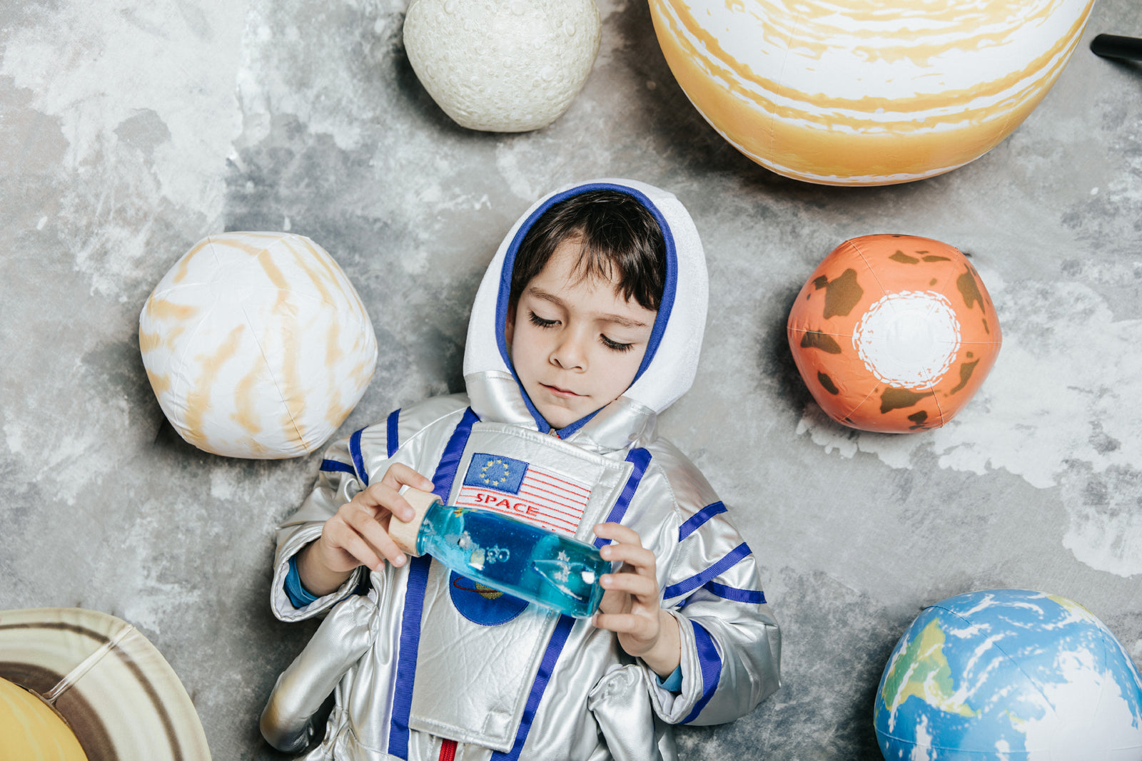 In deze unieke sensorische fles zweeft een astronaut en raket te midden van een betoverend schouwspel van bubbels en kleuren. Schud de fles en zie hoe de speciale vloeistof alles tot leven wekt – een waar spektakel dat de verbeelding prikkelt en tot rust brengt.