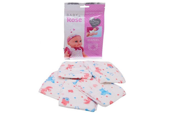 De set bestaat uit 5 papieren luiers, die voorzien zijn van een leuk printje.