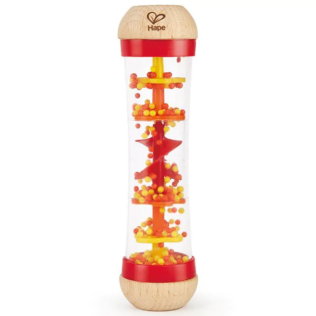 Draai deze regenmaker om en stimuleer de zintuigen met de langzaam rollende kralen en de zachte regendruppelgeluiden. Perfect ontworpen vorm voor een eenvoudige hantering door de peuter.