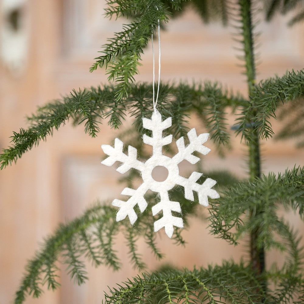Vilten witte sneeuwvlok. Leuk voor in de kerstboom!