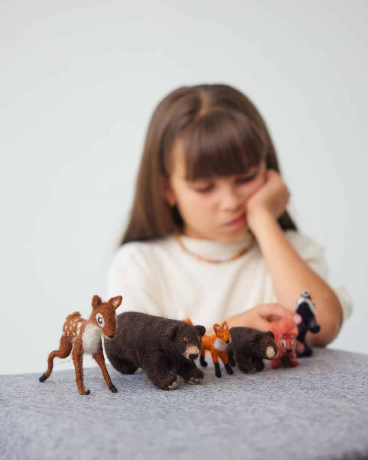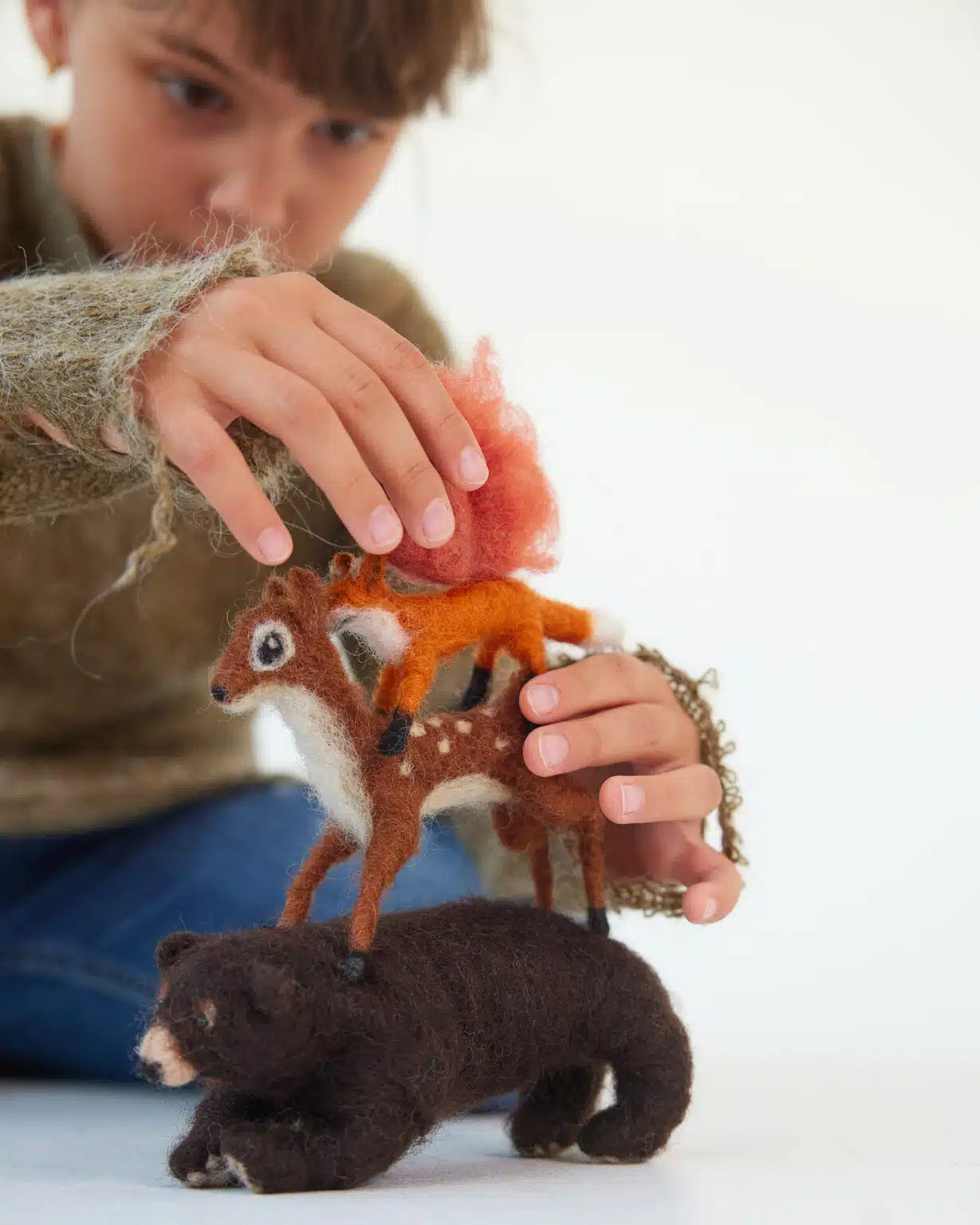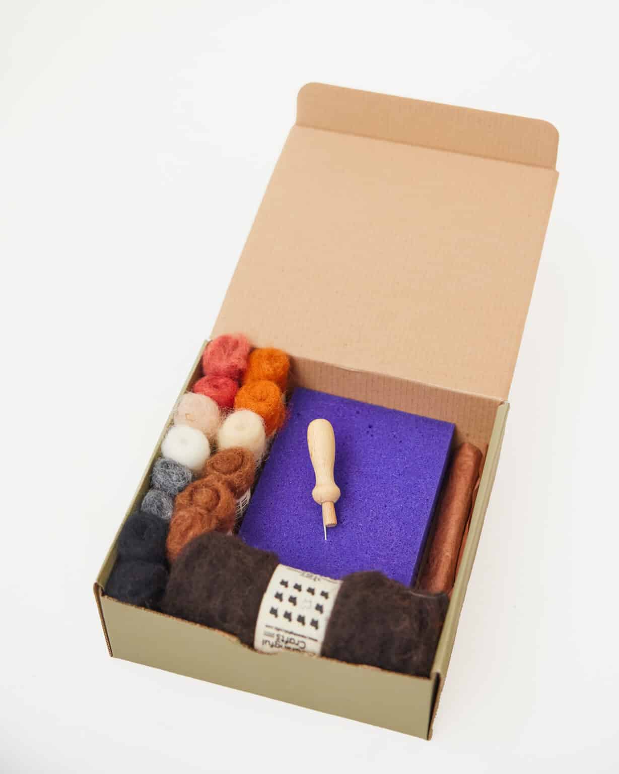 Ontdek het plezier van naaldvilten met dit complete startpakket! Bevat 9 kleuren Bheda viltwol, 2 viltnaalden, een ecologisch schuimkussen, een houten viltnaaldhouder, zwarte gitjes voor de ogen, wikkelpijpenragers en duidelijke instructies met een video. Perfect voor beginners en gevorderden die bosdieren willen maken zoals een beer, hert, das, vos en eekhoorn.