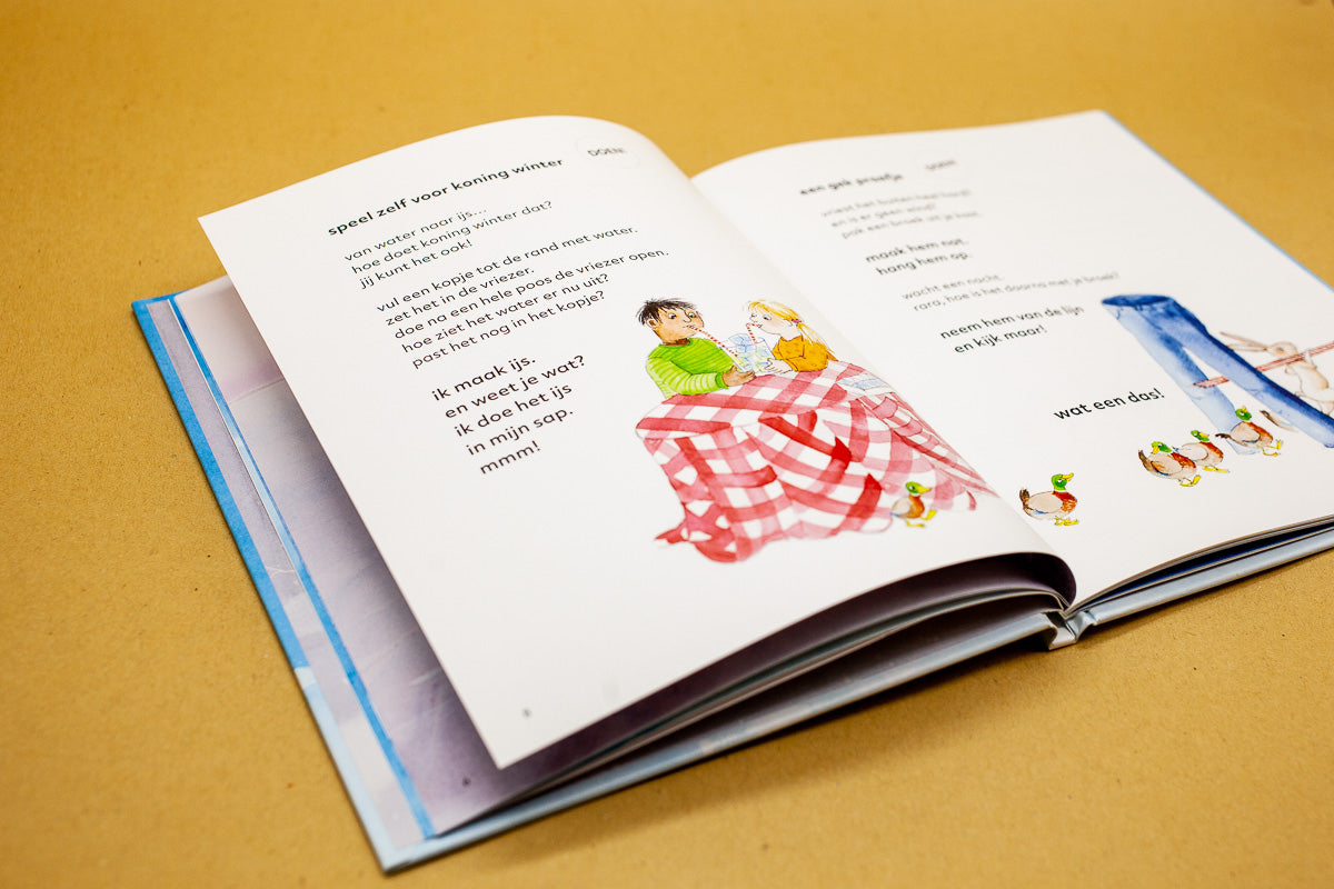 Een informatief boek om je al (samen)lezend en experimenterend met elkaar te verwonderen over wat de winter brengt. Beginnende lezers lezen de groot gedrukte teksten, wat meer gevorderde lezers de kleiner gedrukte (een mix van tekst vergelijkbaar met AVI start, AVI M3 en AVI E3).