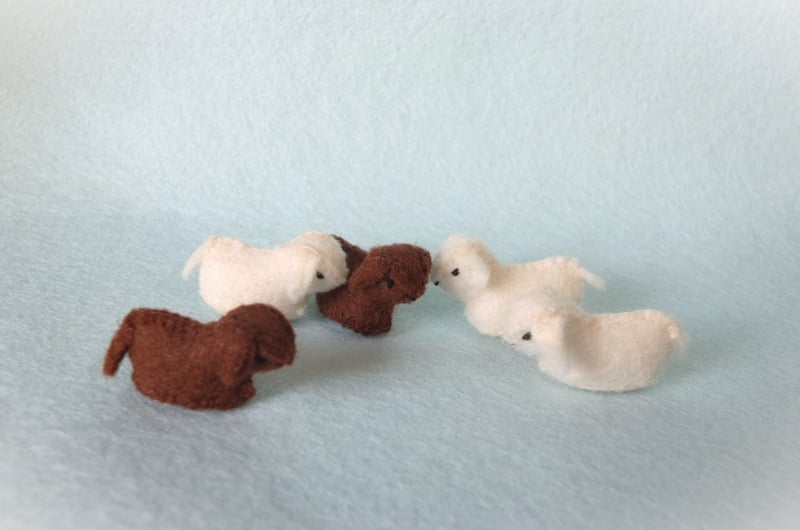 Deze lieve schaapjes passen heel goed bij de drie herders van de Kersticoon. Maar ze kunnen ook op zichzelf staan. Ze zijn 3.5 cm groot en makkelijk om te maken.